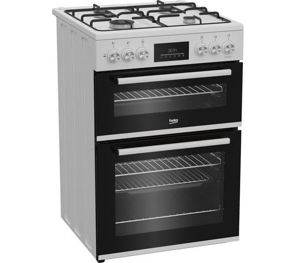 Home / Cooking / Dual Fuel Product Description Dinner time's a breeze with this Beko dual fuel cooker. Its AeroPerfect technology is inspired by aerodynamics and aircraft design. It uses a constant airflow to cook food quickly and evenly. It'll taste far better than any in-flight meal too! The 4-burner gas hob lets you juggle multiple pots and pans at the same time. The rapid burner will have a pot of water boiling in no time. There's even simmer burner that's perfect for cooking soups. And the Steam cleaning function softens burnt on grease so you can just wipe it away. Just add a little water to the tray and let the oven do all the hard work. Good to know - The second oven doubles as a grill for delicious bacon sarnies or loaded potato skins - Dial in the perfect settings for your meal on the easy-to-use touch control LED display - For added peace of mind, the flame safety device cuts off the gas supply if the flame goes out - LED lighting inside the oven lets you keep a close eye on your meal as it cooks GAS INSTALLATION: This product requires installation by a qualified gas safe engineer, ELECTRICAL INSTALLATION: This product requires professional installation to a dedicated cooker circuit Delivery Collection in Store - FREELocal Delivery - FREENon Local Delivery - £25.00 Beko FDD6231W 60cm Dual Fuel Cooker In White Item in Stock (1 Available) £430.00