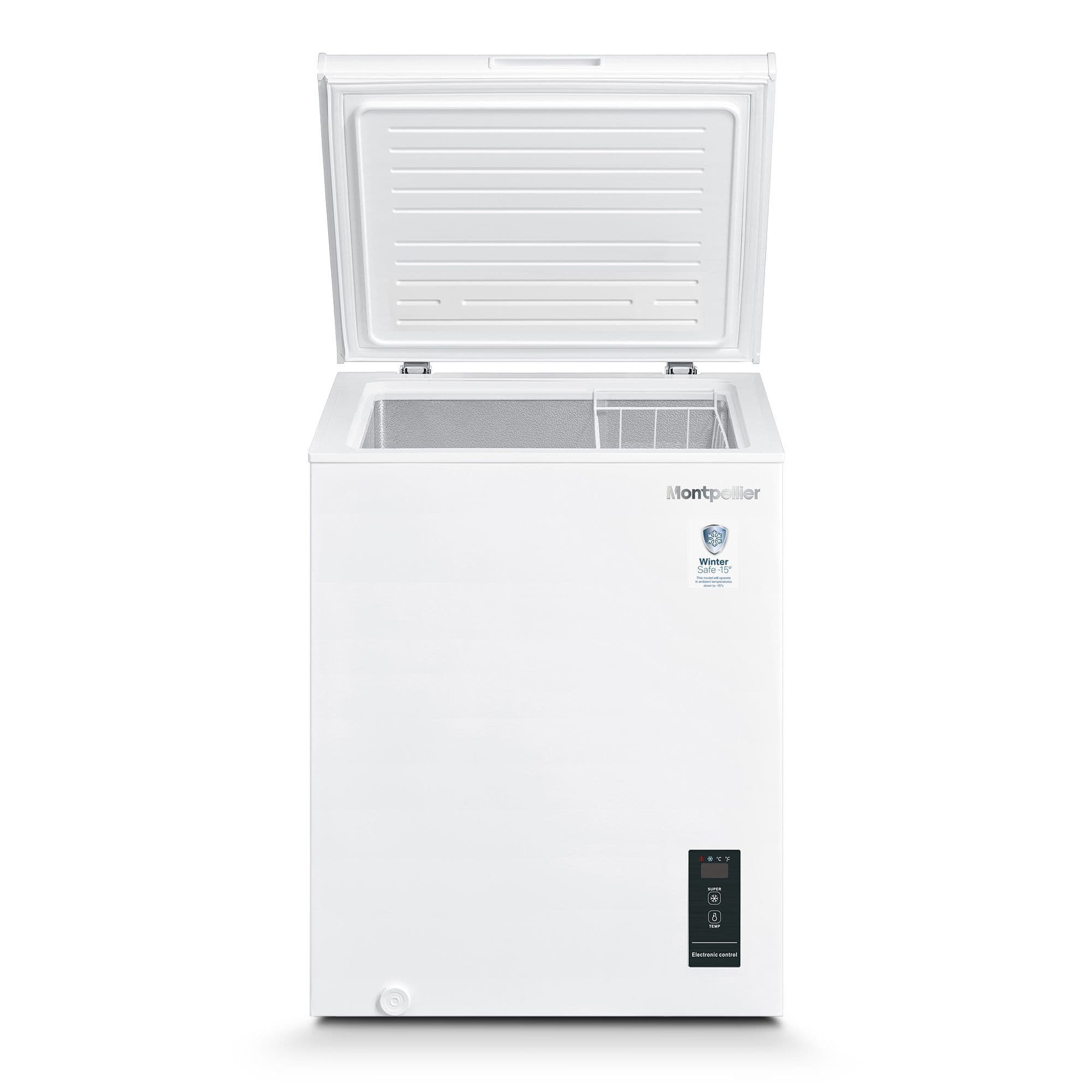 Home / Chest Freezers Product Description Montpellier MCF100EW 99 Litre Chest Freezer Chest freezers are a simple and convenient solution for extra freezer space. Montpellier chest freezers are able to operate in ambient temperatures down to -15oC, meaning they are safe to use in outbuildings and garages throughout the whole year, including winter. General Specification This 99-litre capacity chest freezer by Montpellier comes with a storage basket, counter-balanced lid and easy clean interior. It has an easy-to-use LED electronic control, recessed handle and no-frills design, so you get maximum storage for all of your frozen items without fuss. It also has the added bonus of being able to switch from a freezer to a chiller, when you need that extra space for chilled goods rather than frozen. Additional Features This model also has Winter Safe -15°c technology which means the freezer is safe to use down to an ambient temperature of -15°c. Energy Rating The energy rating from 1st March 2021 is E, in line with the new energy label reform. Delivery Collection in Store - FREELocal Delivery - FREENon Local Delivery - £25.00 Montpellier MCF100EW 99l Chest Freezer Item in Stock (1 Available) £120.00